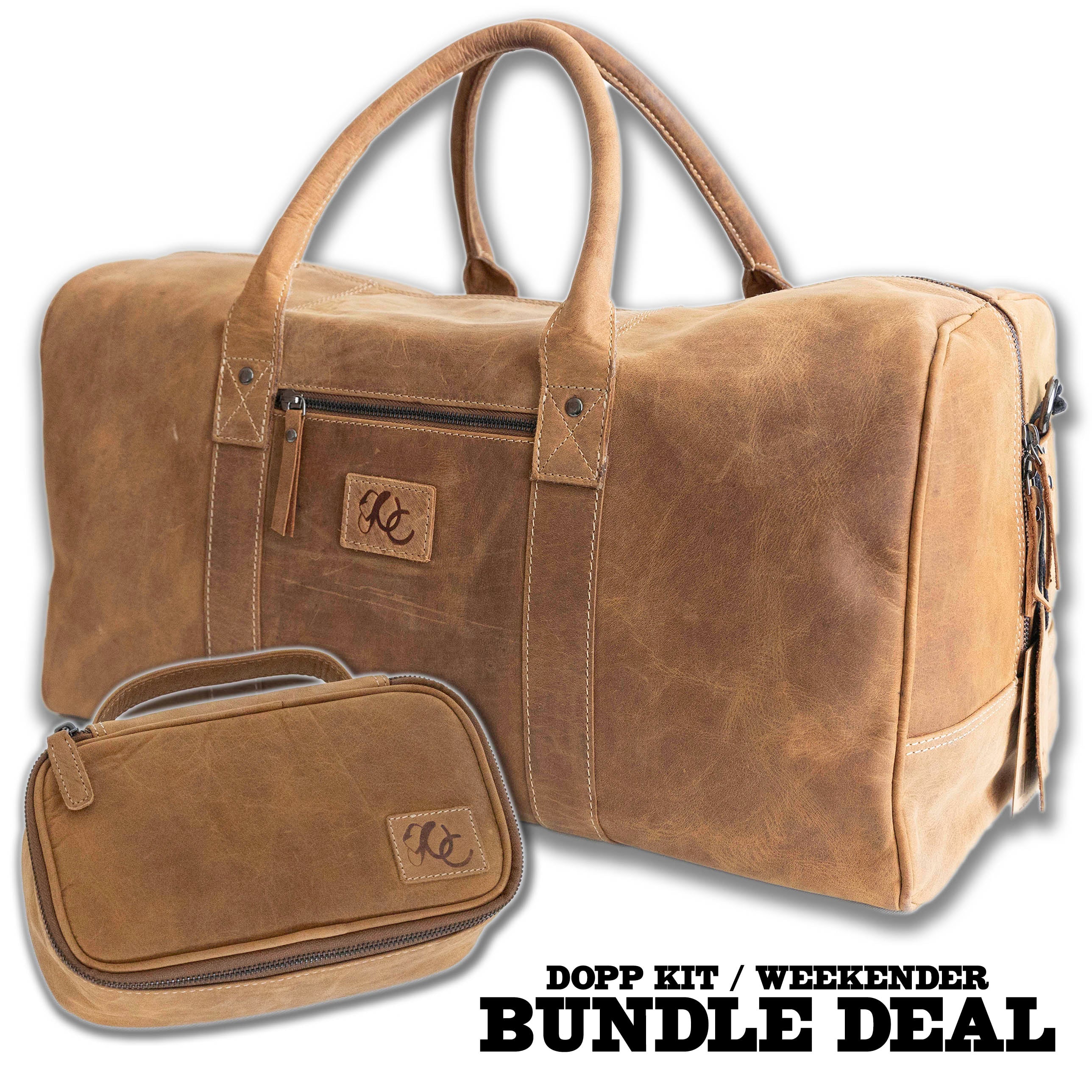Leather Weekend Bag + Dopp Kit Bundle – Full Grain Travel Set
